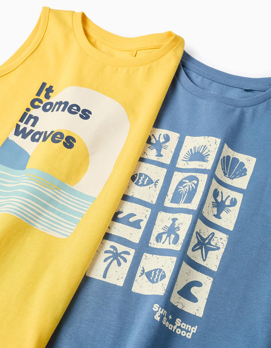 2 T-shirt + pantaloncini in cotone per bambini 'Sun