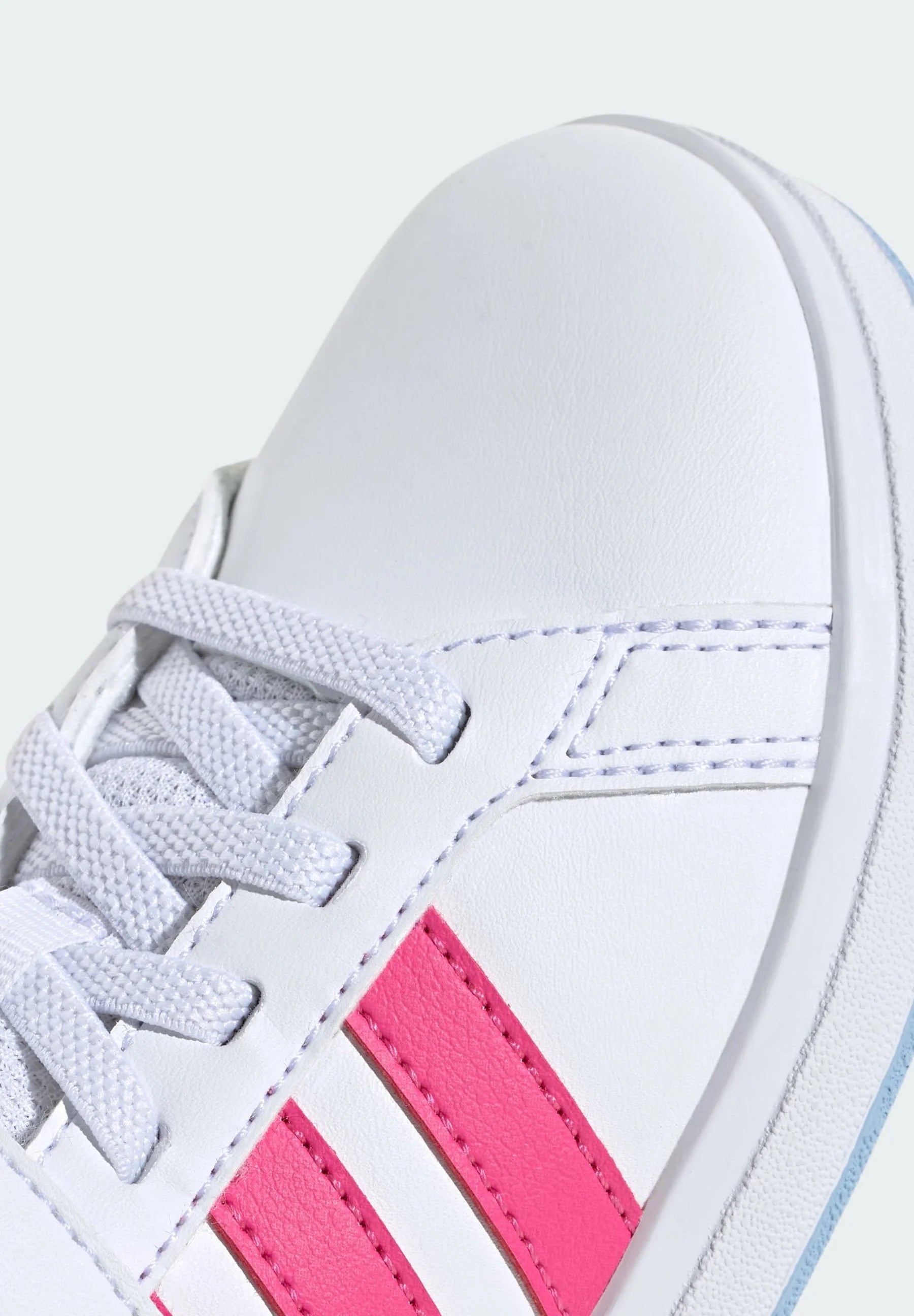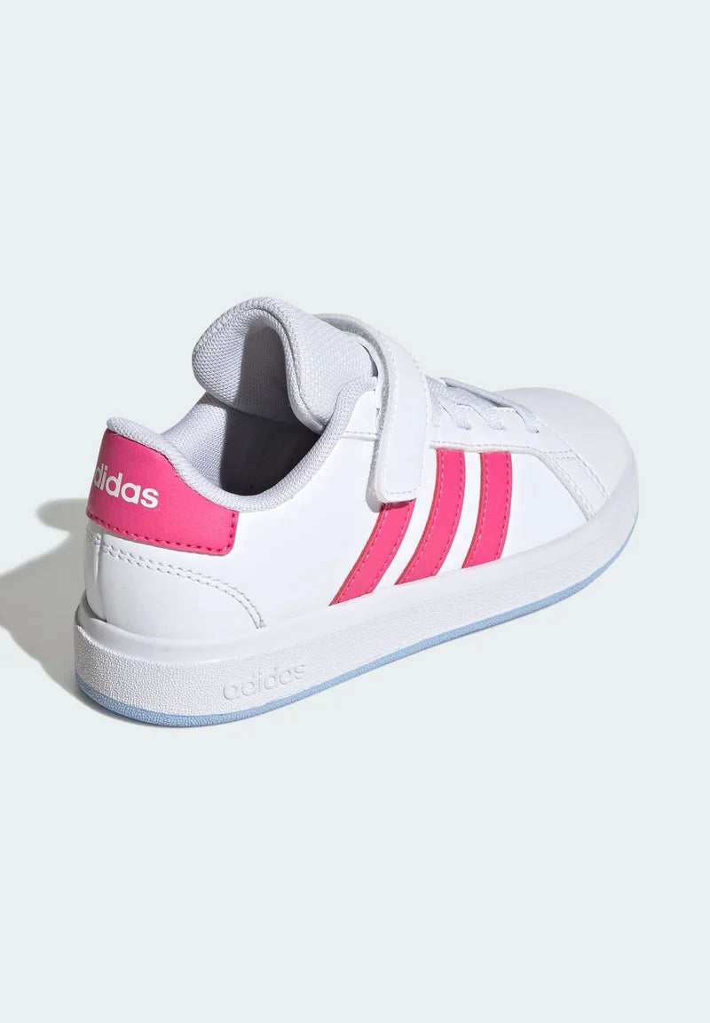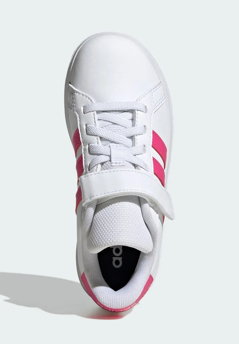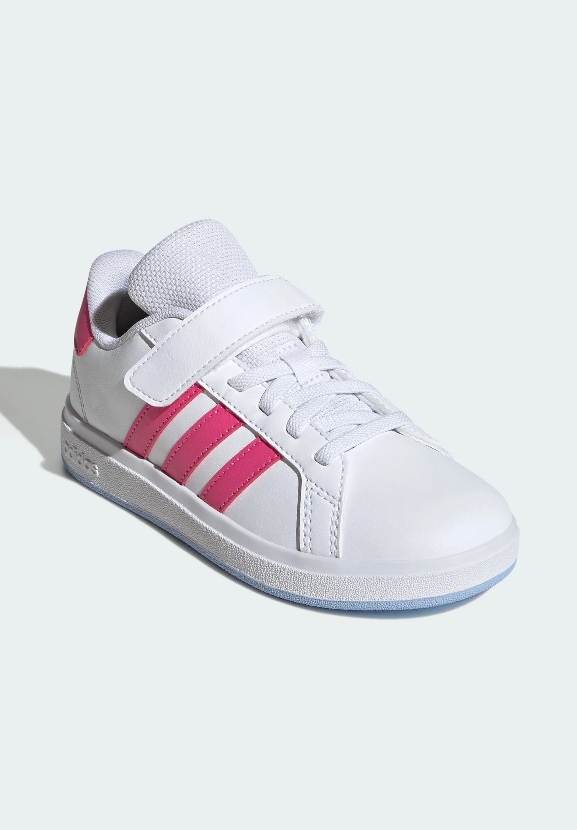 Vi presentiamo le scarpe Grand Court 2.0, un modello unisex perfetto sia per la strada che per il tempo libero. Realizzate con materiali parzialmente riciclati, queste scarpe presentano una tomaia in pelle sintetica e una chiusura con lacci elastici e cinturino superiore per una calzata sicura. La suola preformata in gomma garantisce resistenza e comfort per tutto il giorno. Una rivisitazione moderna di elementi di design iconici rende queste scarpe versatili e universalmente apprezzate nella nostra gamma da campo. Perfette per i futuri campioni!