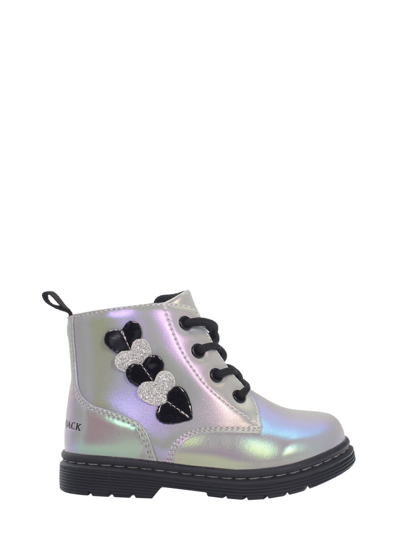Descrizione: anfibio in ecopelle laminata decorato con cuori laterali.