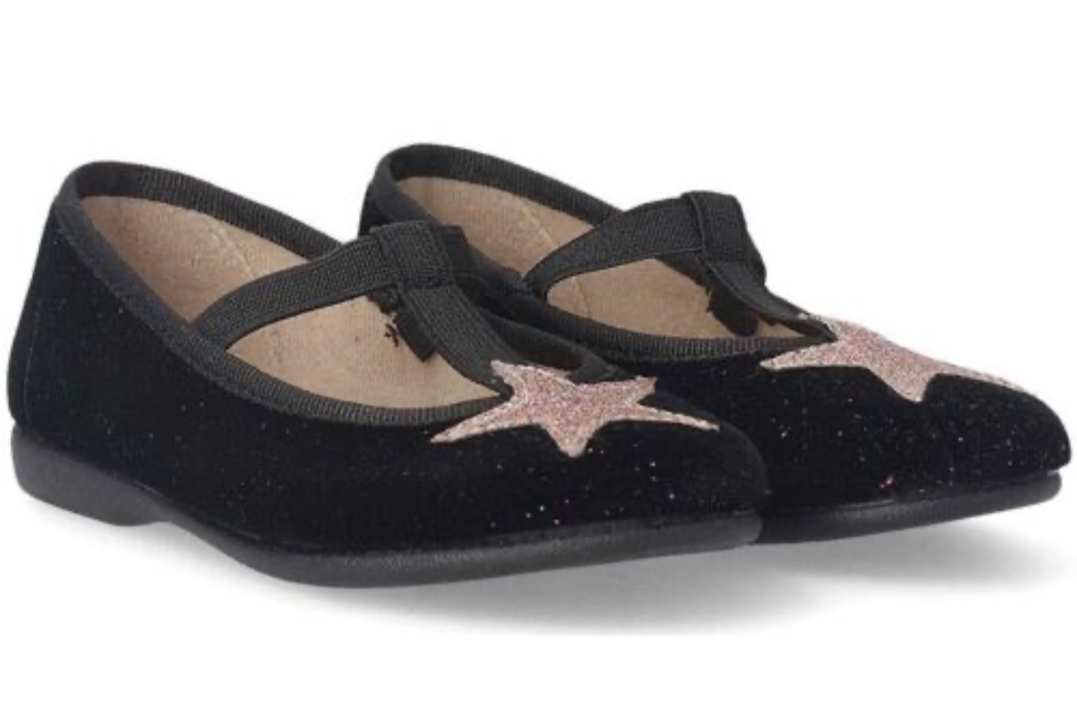 Ballerina con elastico e velluto glitterato
