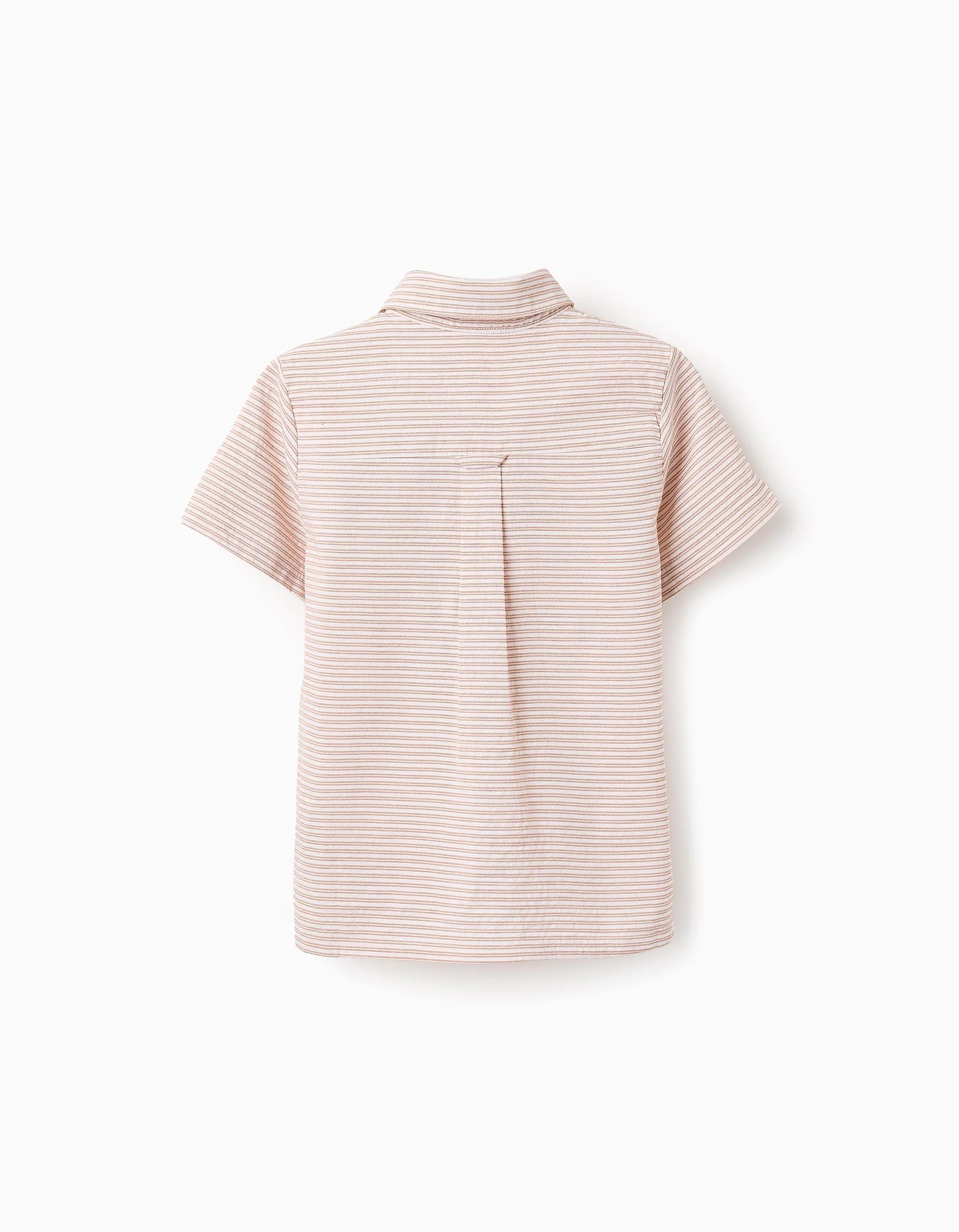 Camicia a righe a maniche corte per ragazzi, in misto cotone. Taschino sul petto. Per look casual ma eleganti!