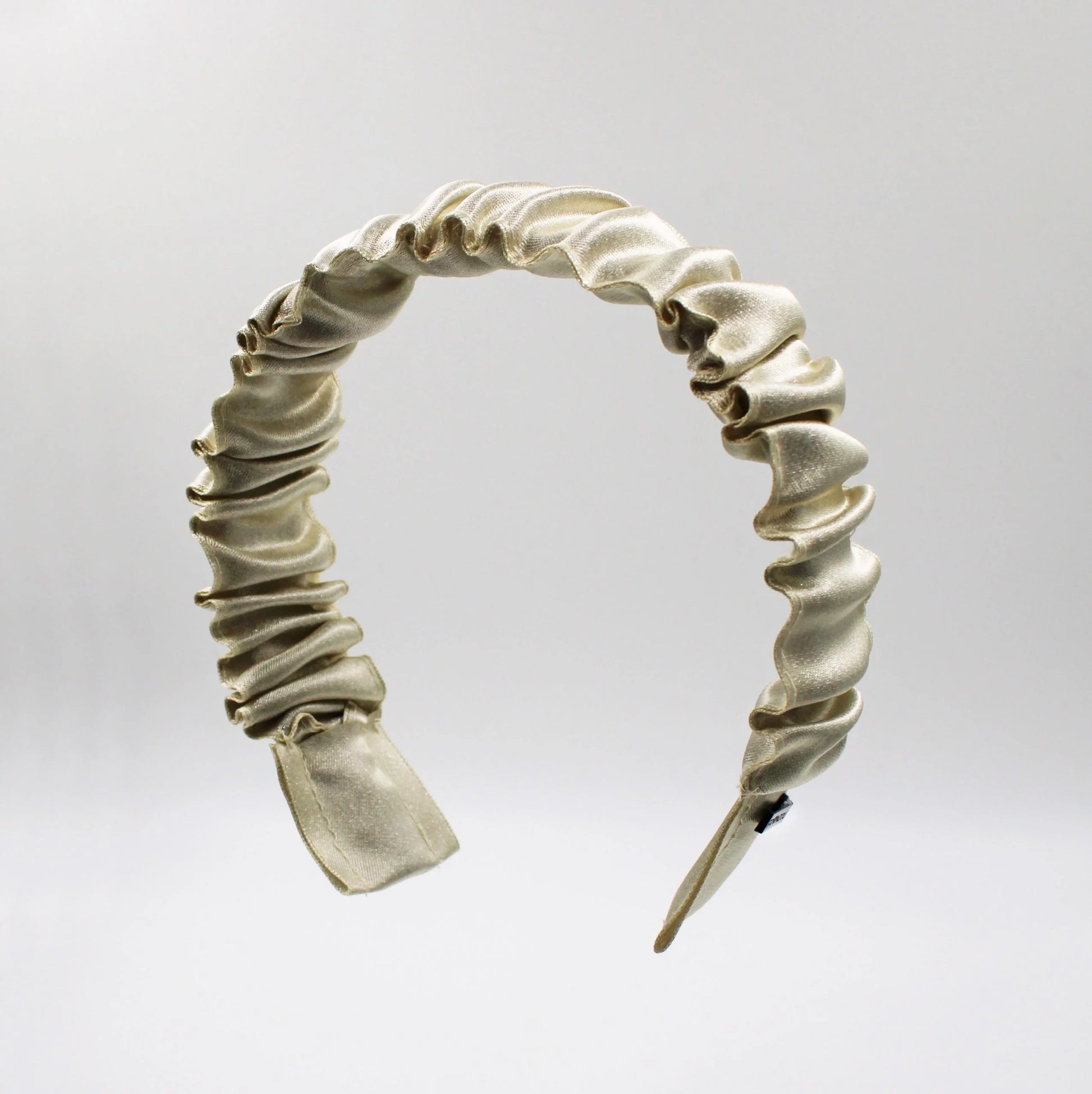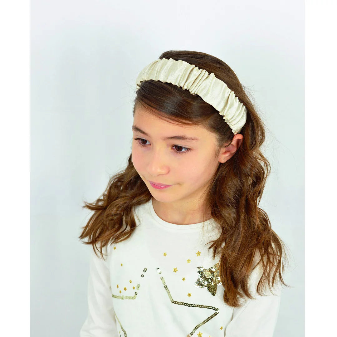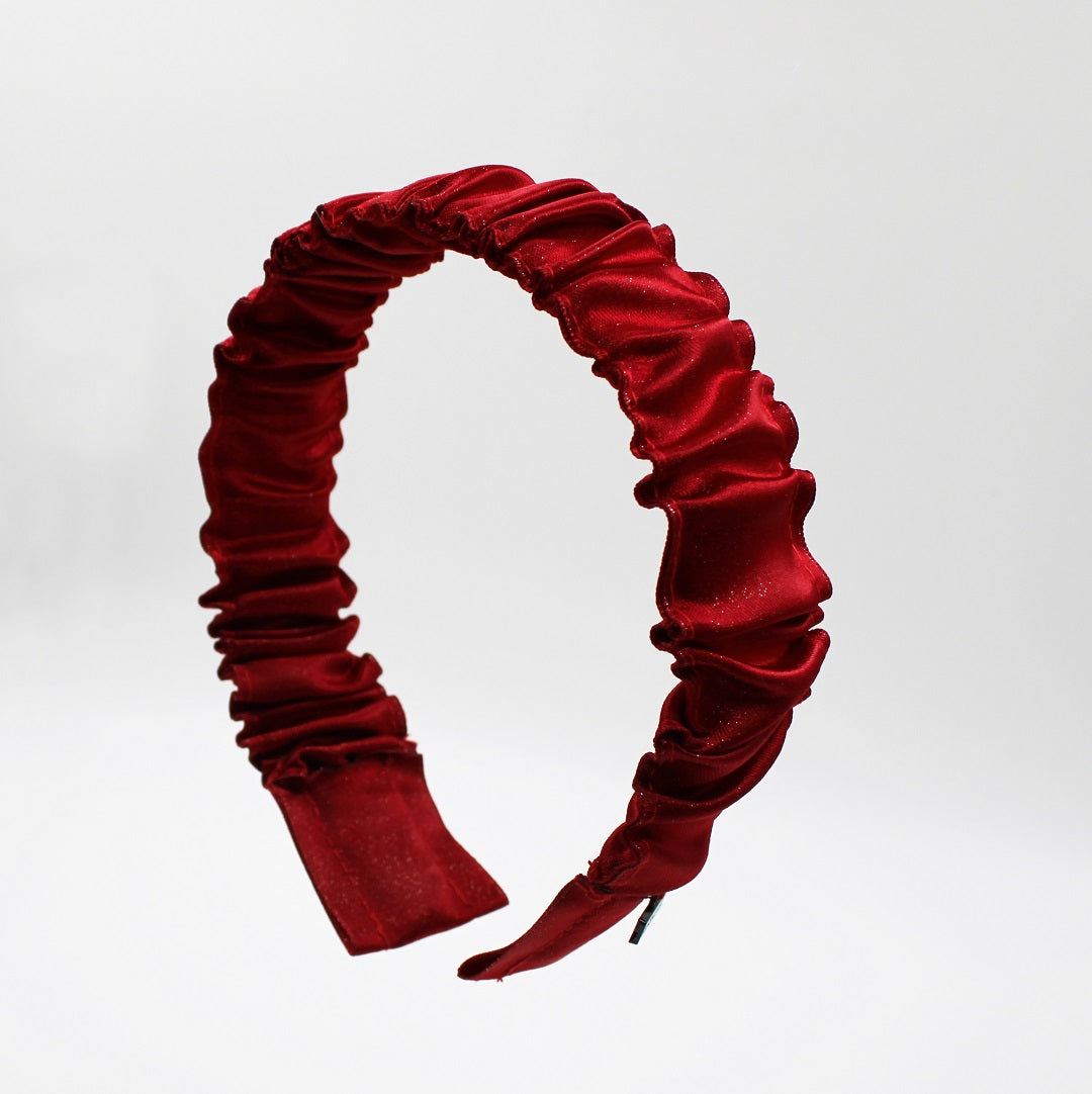 Un cerchietto dalle forme arricciate date dal tessuto in lamè glitter.