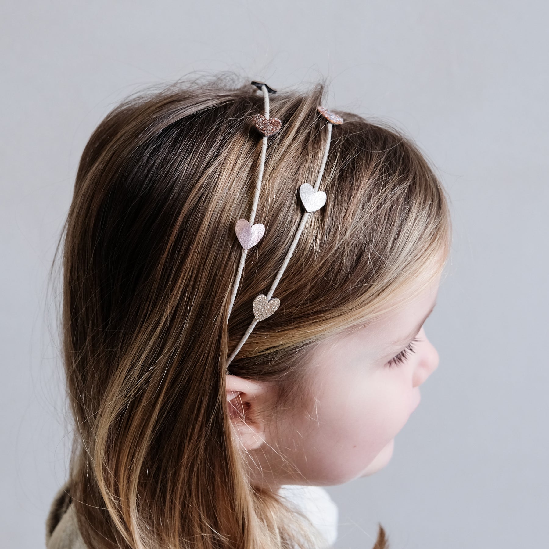 Aggiungi un tocco di romanticismo al look con questo cerchietto unico, decorato con piccoli e graziosi cuoricini. Perfetto per un'occasione speciale o semplicemente per aggiungere un tocco di dolcezza al suo outfit quotidiano.