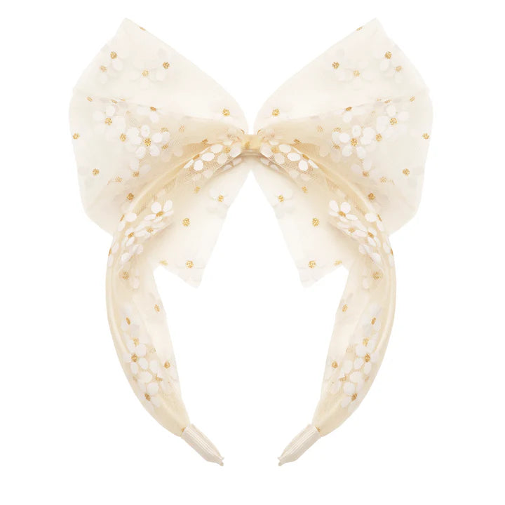 La nostra fascia per capelli con fiocco in tulle a margherita è cosparsa di margherite scintillanti e presenta un fiocco meravigliosamente oversize. Realizzata nel nostro morbido tessuto in tulle e progettata per offrire una vestibilità comoda per le piccole teste.