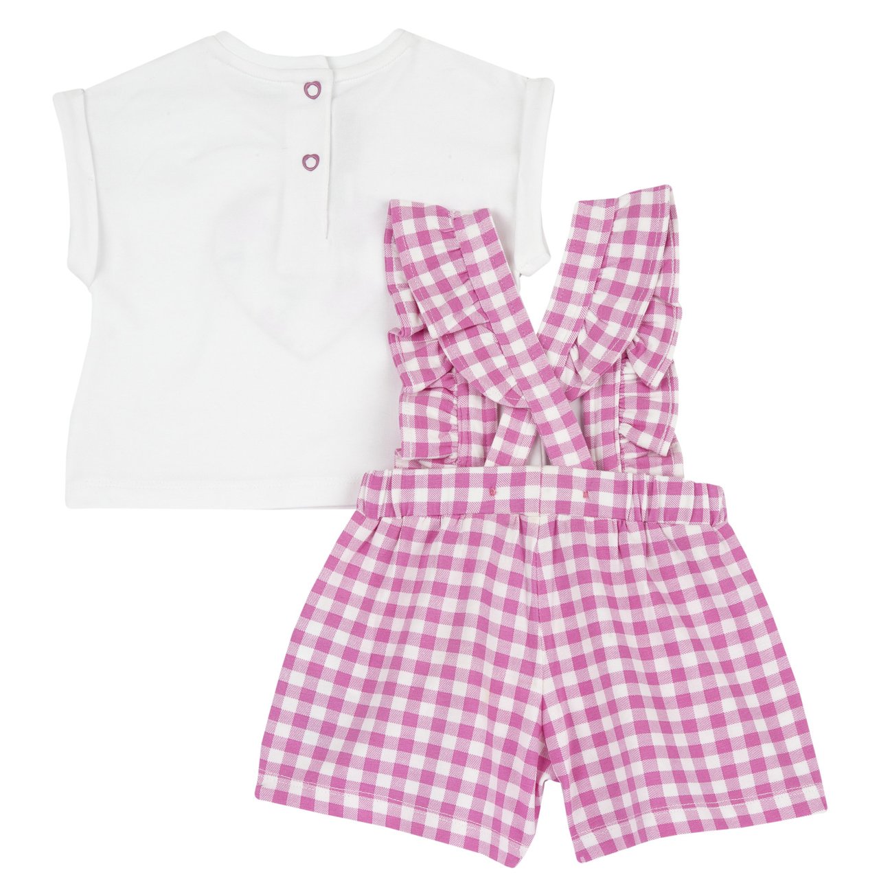 - Completo maglietta girocollo maniche corte con salopette in jersey elasticizzato