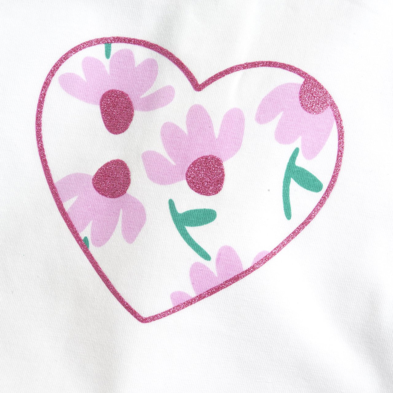 - Maglietta stampa piazzata cuore e margherite con dettagli glitter
