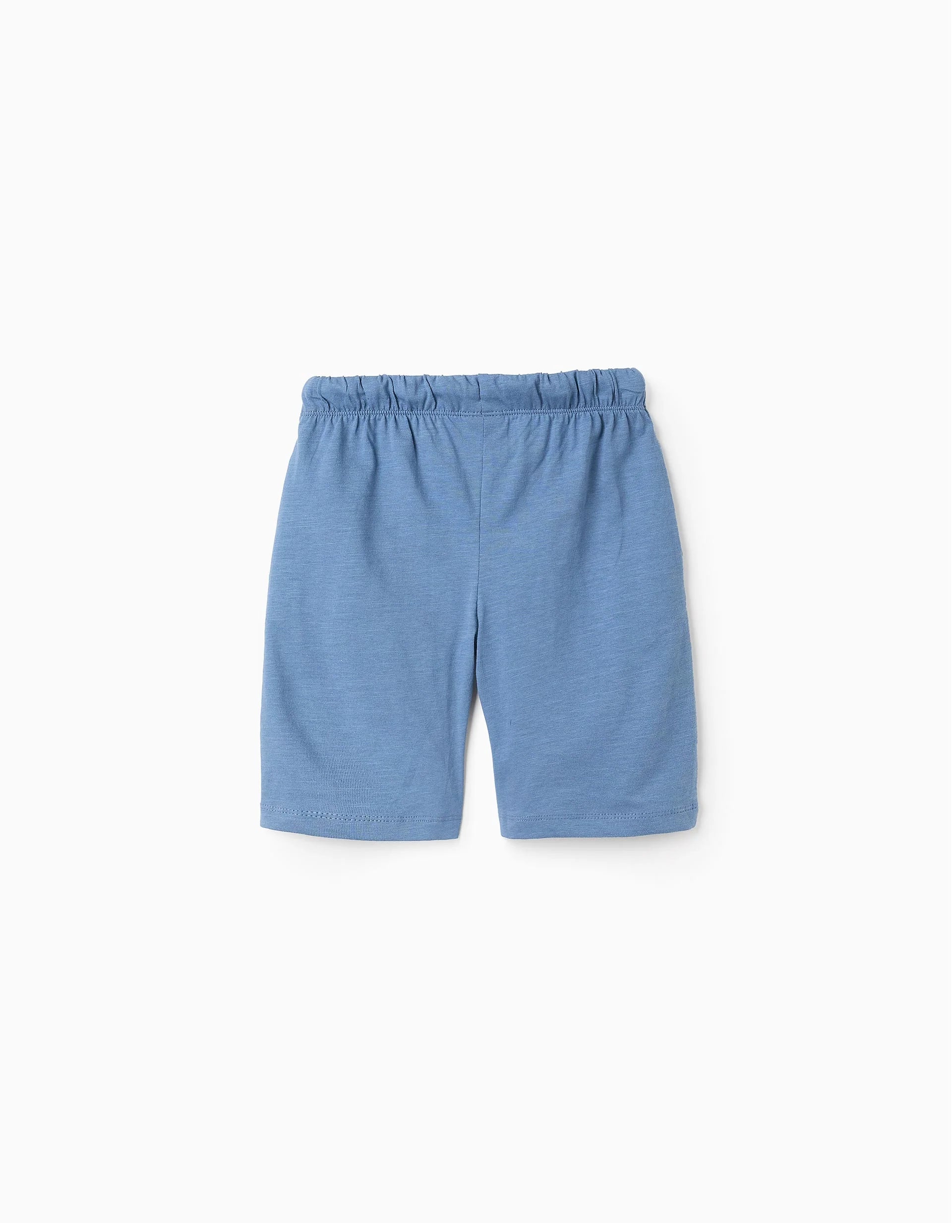 Confezione da due pantaloncini per bambini, in jersey 100% cotone. Include uno short blu e uno grigio, di lunghezza media. Elastico in vita con coulisse. Tasche laterali. Etichetta in gomma con marchio sul lato. Un set di pantaloncini leggeri, morbidi e comodi!
