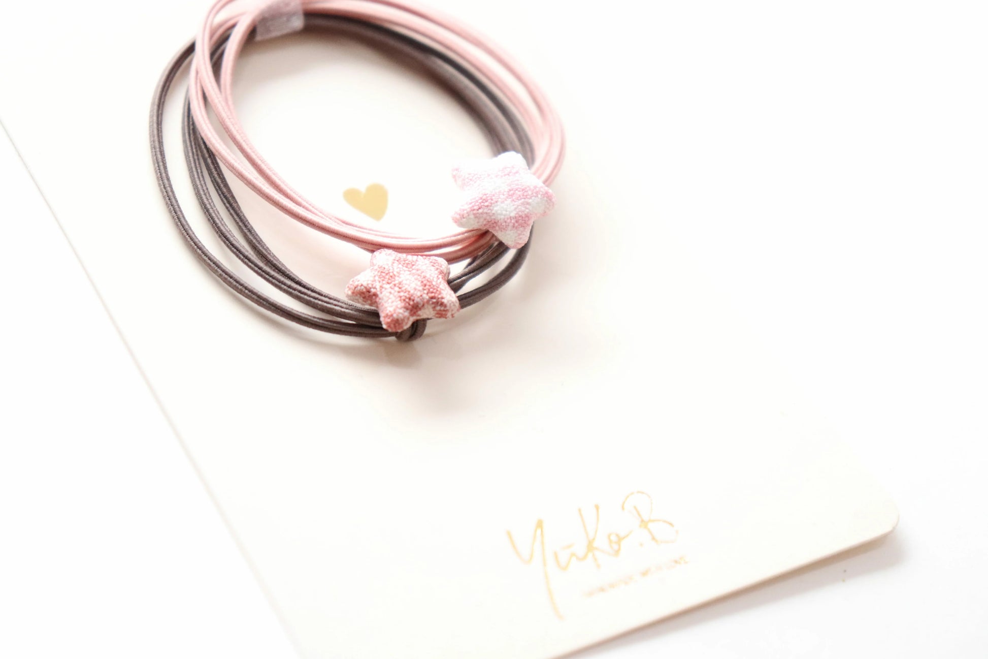 Gli "Hair Ties - Vichy Star Bands Pink" sono l'incarnazione perfetta dell'estetica raffinata di Yuko B. Il loro accattivante motivo a quadretti rosa attira immediatamente l'attenzione. Questi elastici uniscono praticità e bellezza, tenendo a posto i capelli dei bambini con stile.