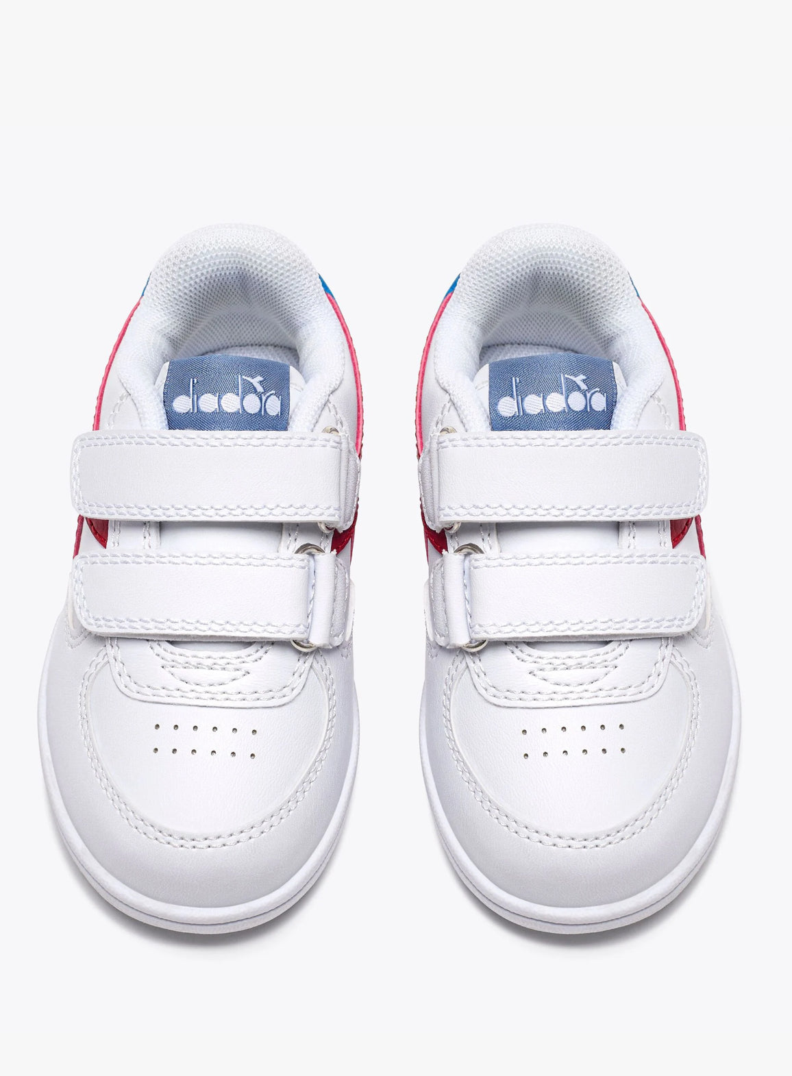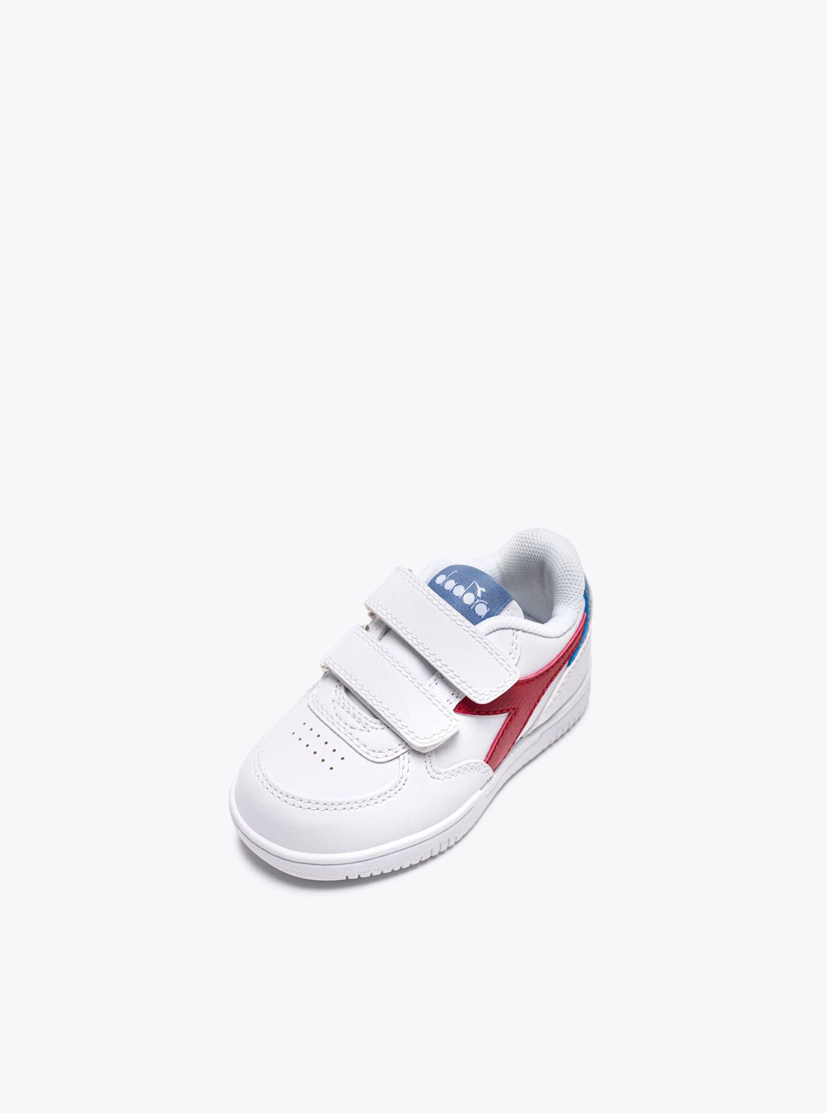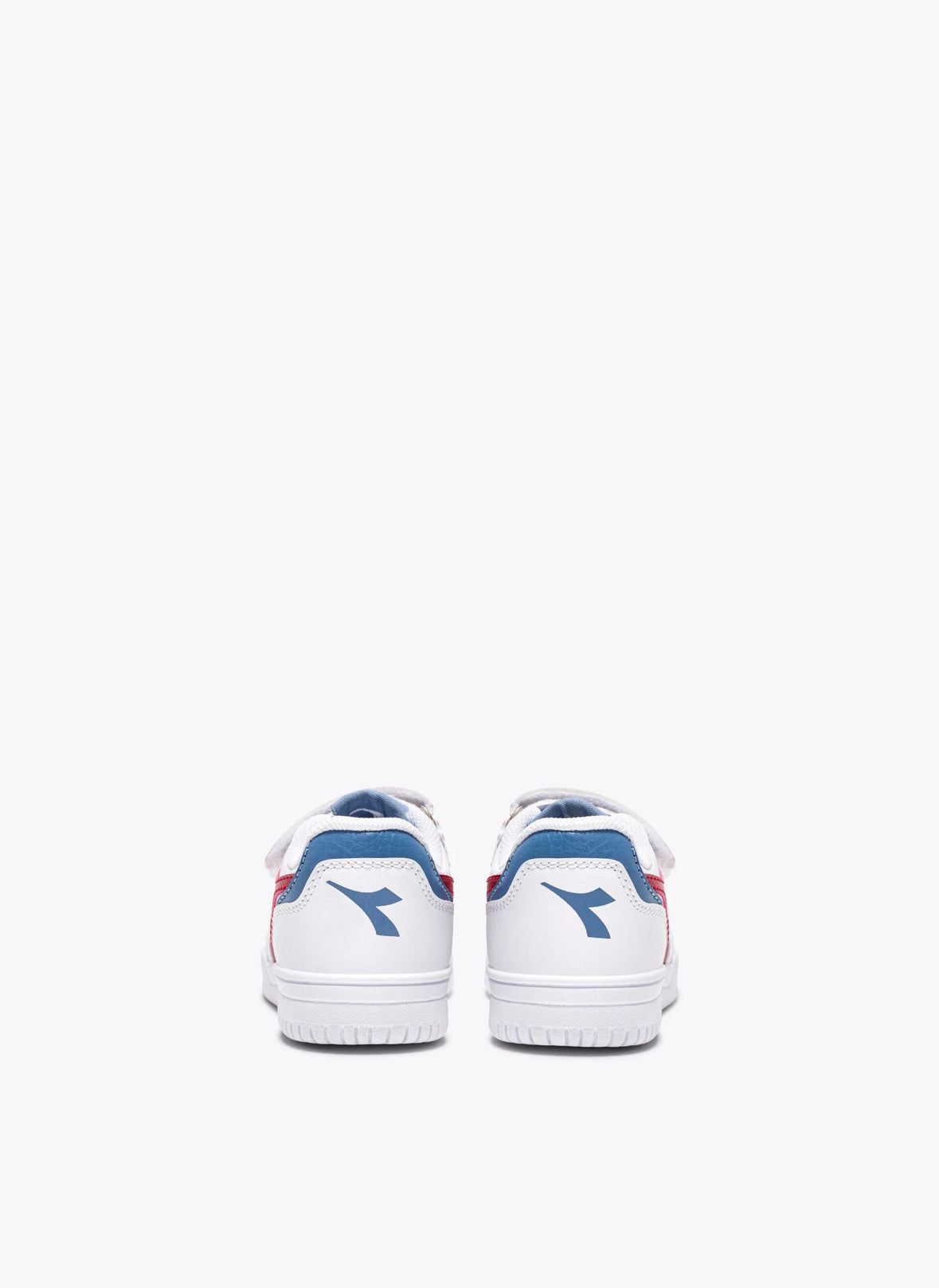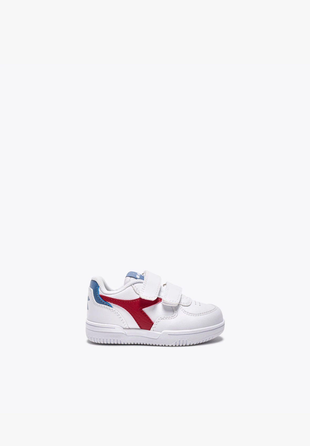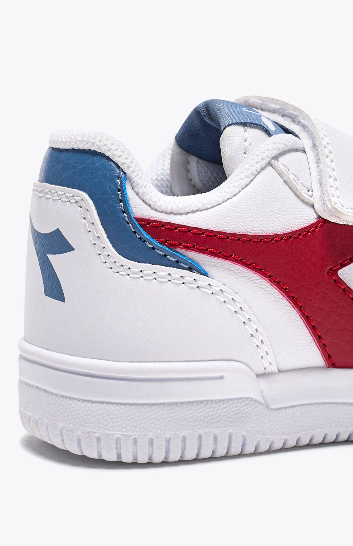 Sneaker per bimbi e bimbe in pelle sintetica con chiusura a zip. Il modello Raptor Low TD, come il corrispetivo da adulto, si arrichisce del fregio a contrasto eil collarino in tessuto.