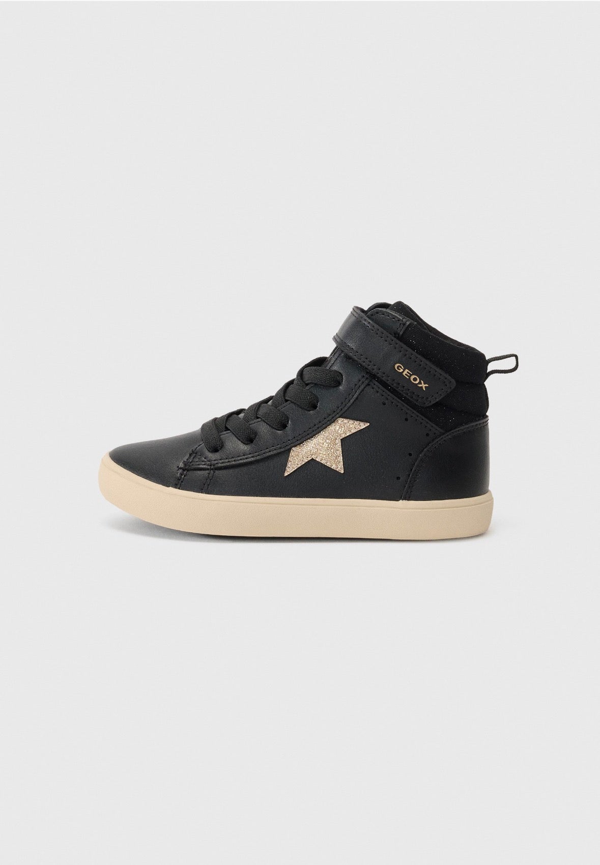 Sneaker bambina dall'anima casual-sportiva e dal design moderno che unisce comfort e stile per le attività quotidiane. In questa versione che mixa nero e champagne, presenta una tomaia realizzata in materiale effetto pelle e tessuto brillante per un look contemporaneo. Gisli accompagna con sicurezza ogni passo dalla scuola al tempo libero, garantendo comfort e un tocco di carattere al look di tutti i giorni.
