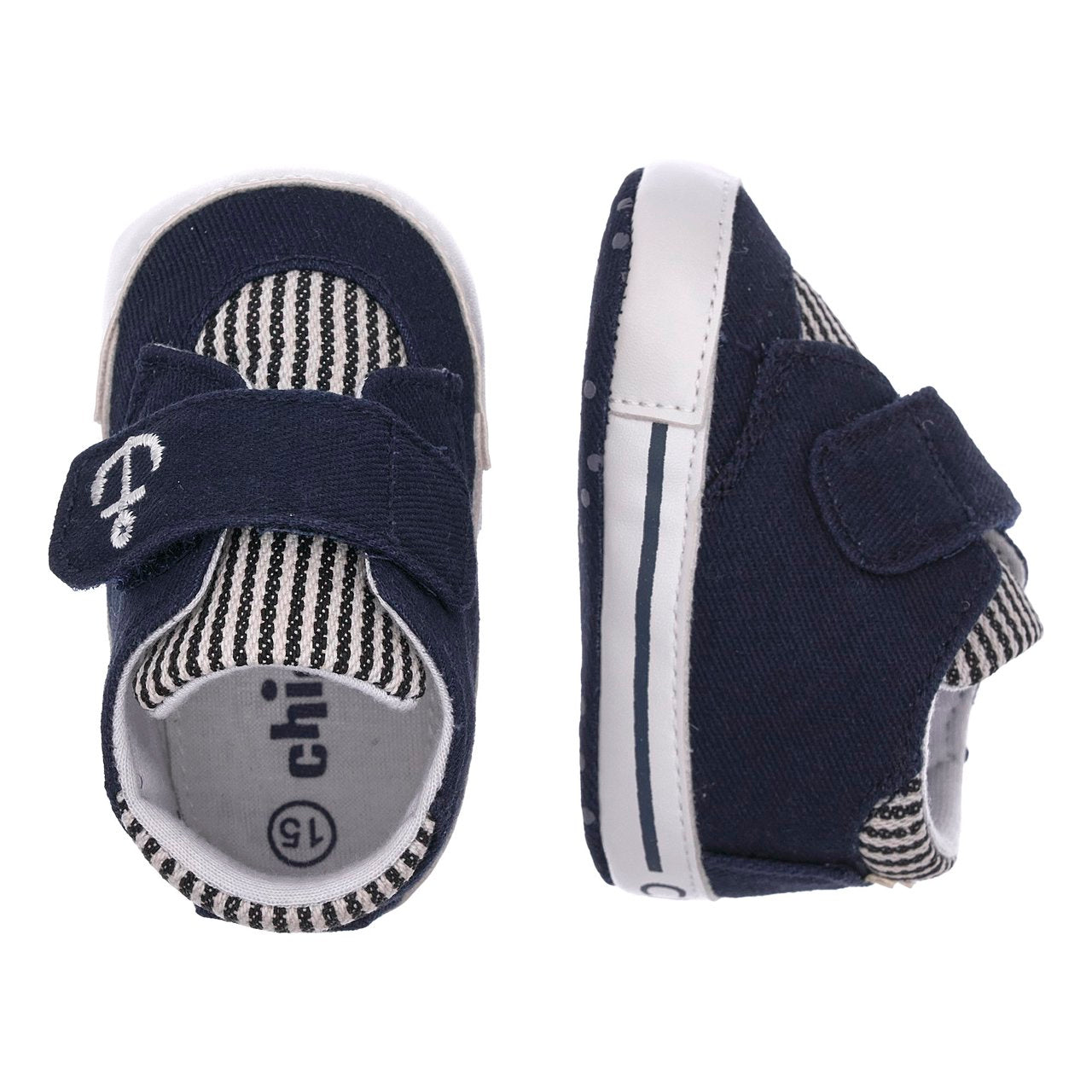 - Sneakers da bambino con dettaglio in tessuto rigato e ricamo sul velcro