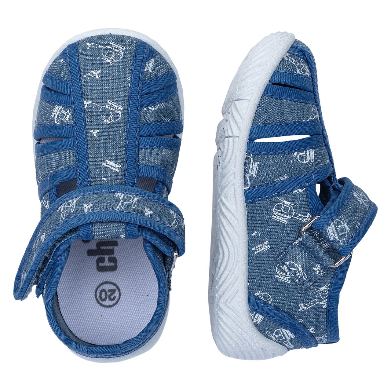 - Pantofola da bambino ad uso interno/esterno casa in tessuto stampato con buffi coccodrilli. Regolabile con velcro