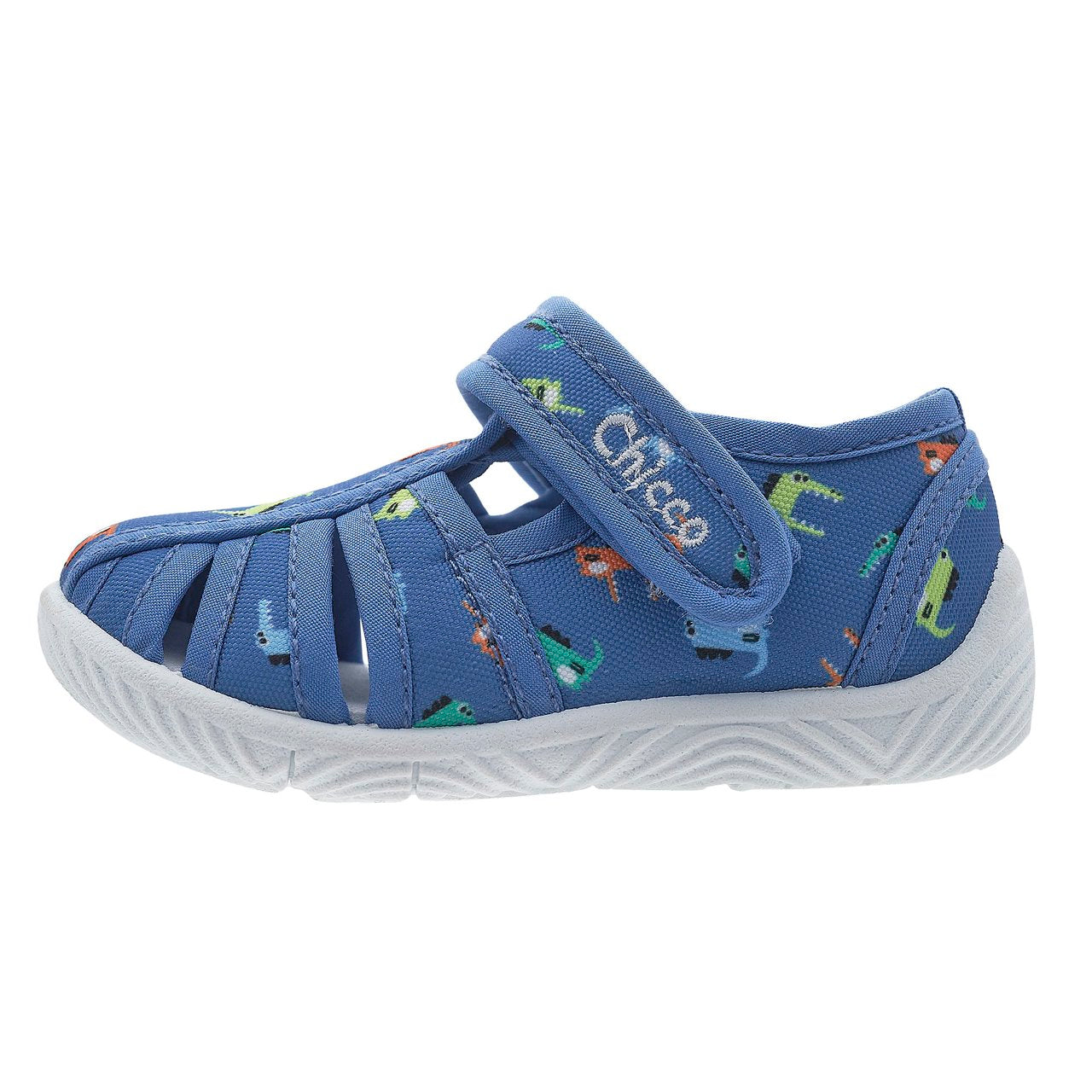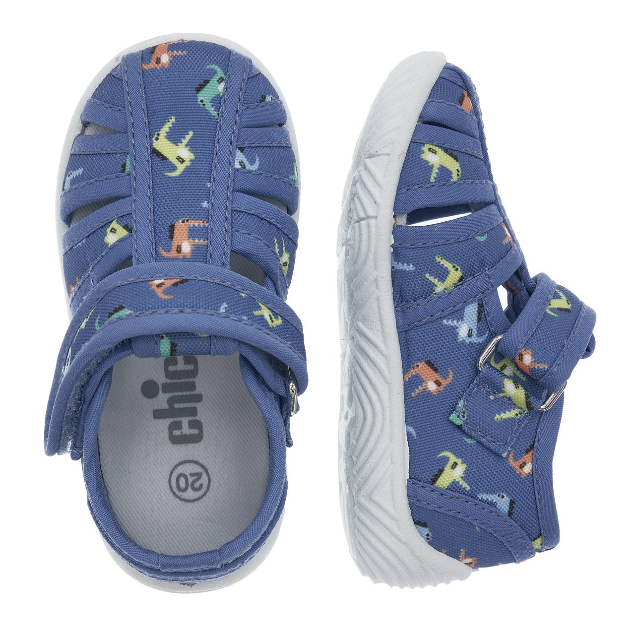 - Pantofola da bambino ad uso interno/esterno casa in tessuto stampato con piccoli dinosauri