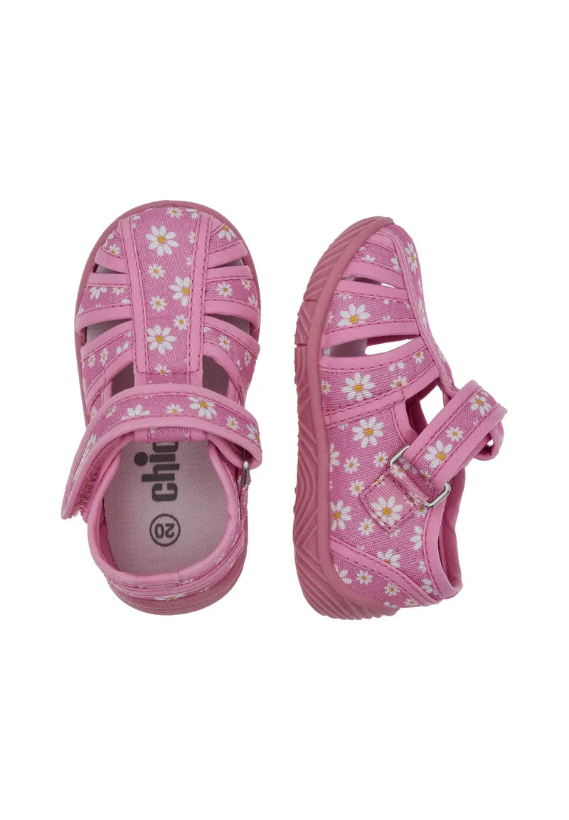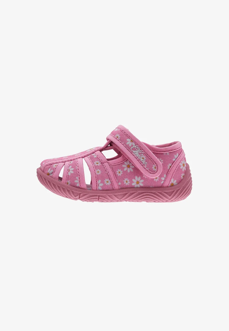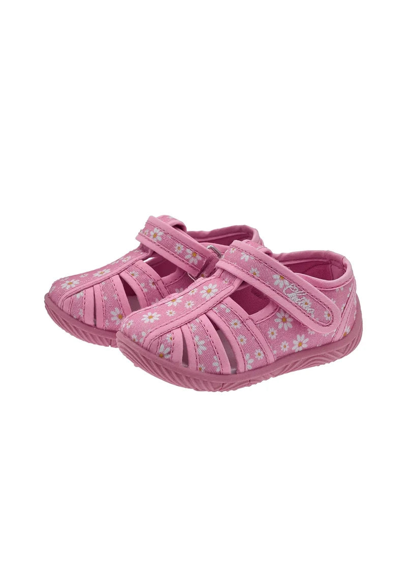 - Pantofola da bambina ad uso interno/esterno casa in tessuto con stampa margherite