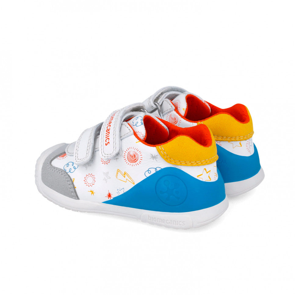 Realizzati in pelle BIANCA combinata con motivi colorati