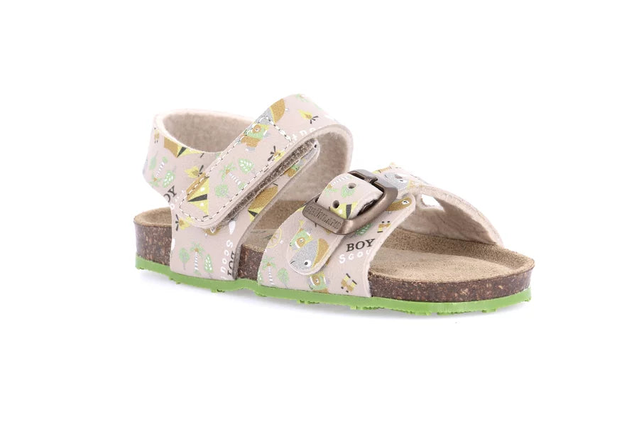 Questa nuovissima versione del nostro sandaletto AFRE accontenterà anche le mamme più esigenti e i piccoli esploratori.La fantasia con i dinosauri farà impazzire il tuo bimbo. La comodità è assicurata dal plantare in sughero Re-soft.