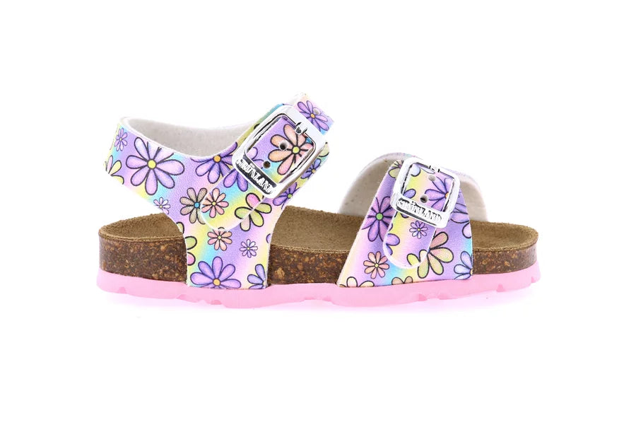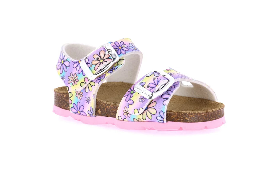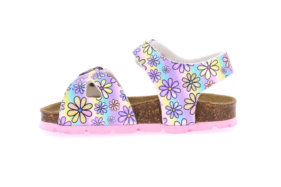 La tua bimba sarà entusiasta di indossare questi sandali colorati e dalla comodità insuperabile. Un plantare in sughero ed un sottopiede in vera pelle sovrastati da una tomaia in materiale riciclato.Noi scommettiamo che la tua piccola non vorrà più toglierli!
