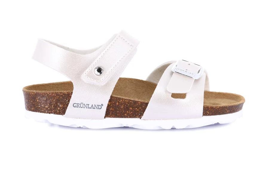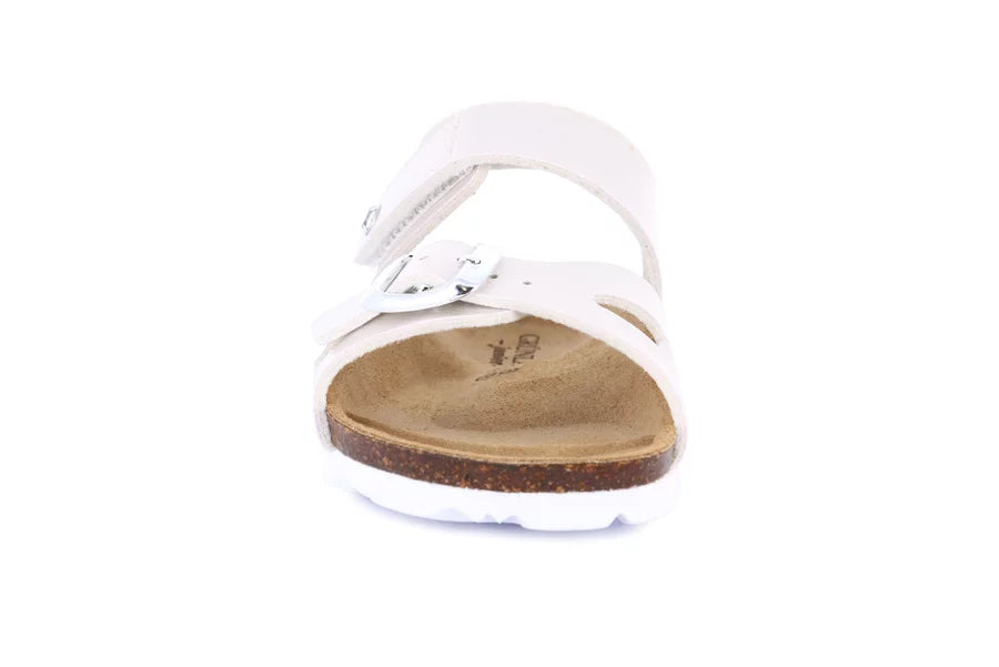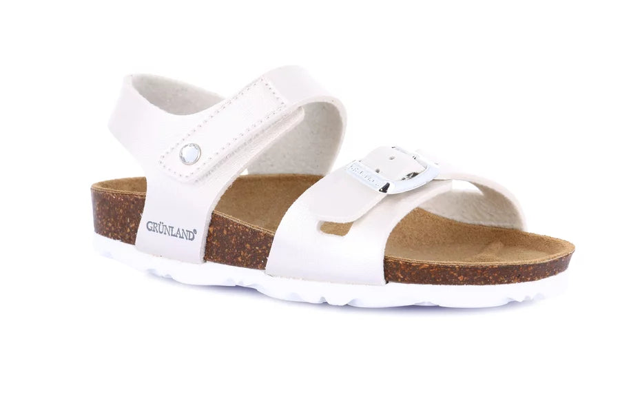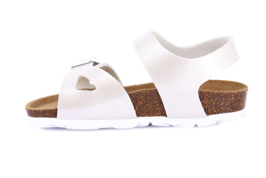 Elegante e raffinato sandaletto, perfetto per l'estate della tua bimba. Grazie al sottopiede anatomico in sughero i suoi piedi sono liberi di respirare.