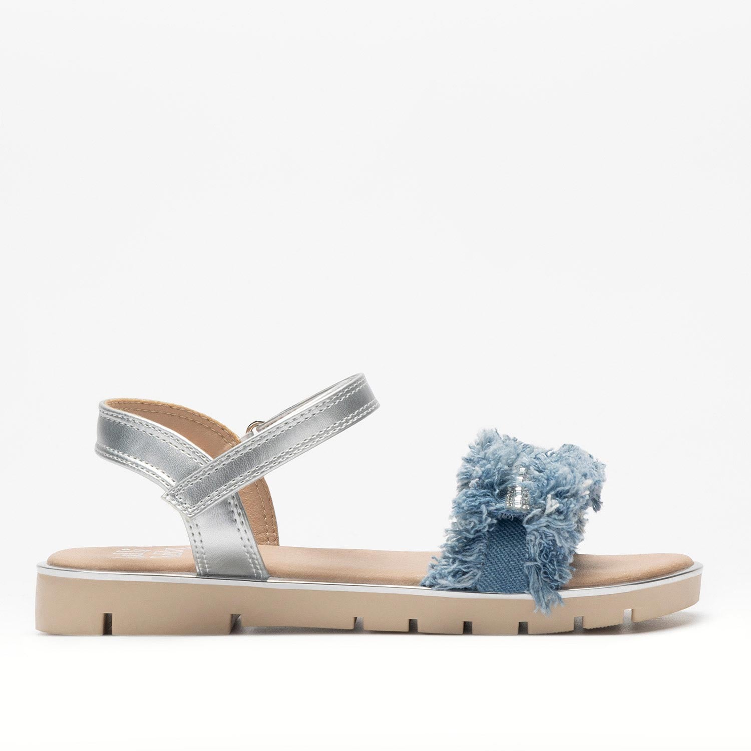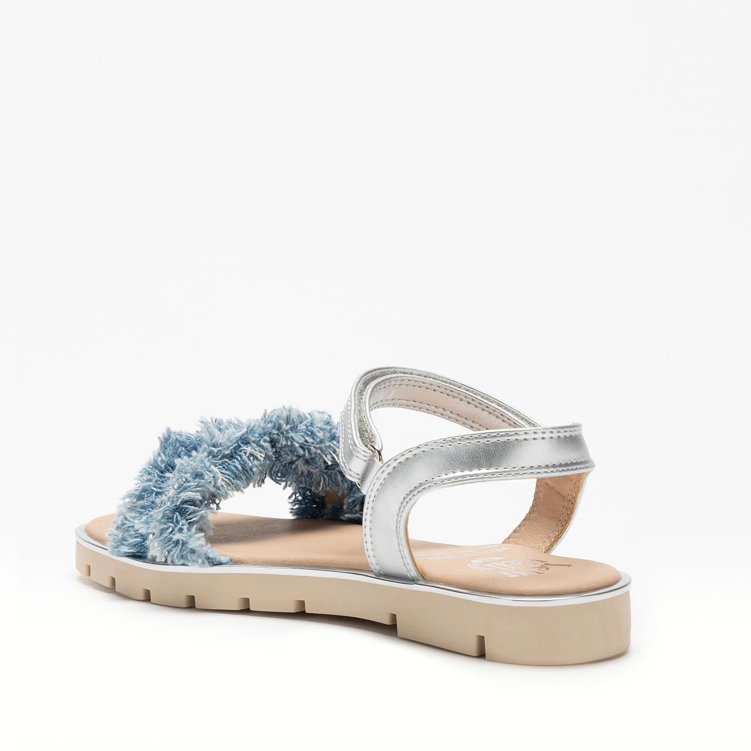 - Tomaia in materiale tecnico luminoso e denim sfrangiato