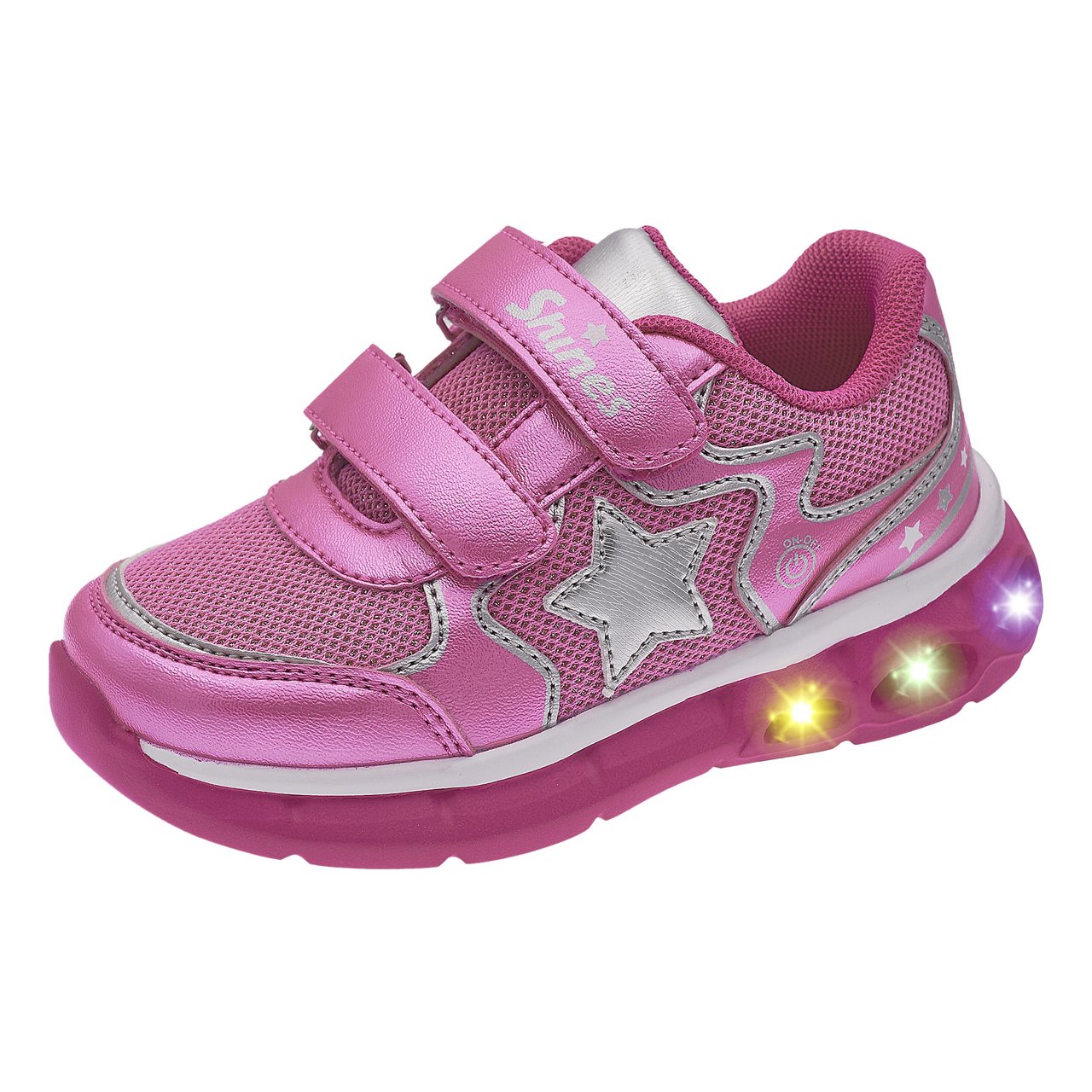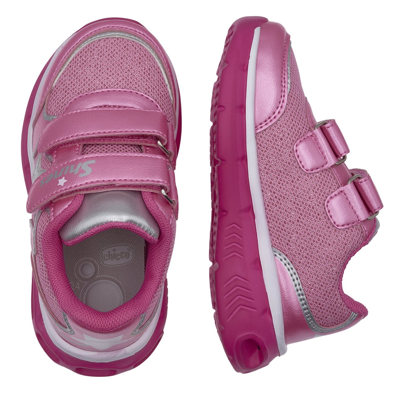- CHICCO LIGHT ON/OFF - Sneakers da bambina dal look sportivo con inserti in tessuto glitter e stella laterale. Led luminosi nella suola con interruttore sulla tomaia per accendere o spegnere le luci