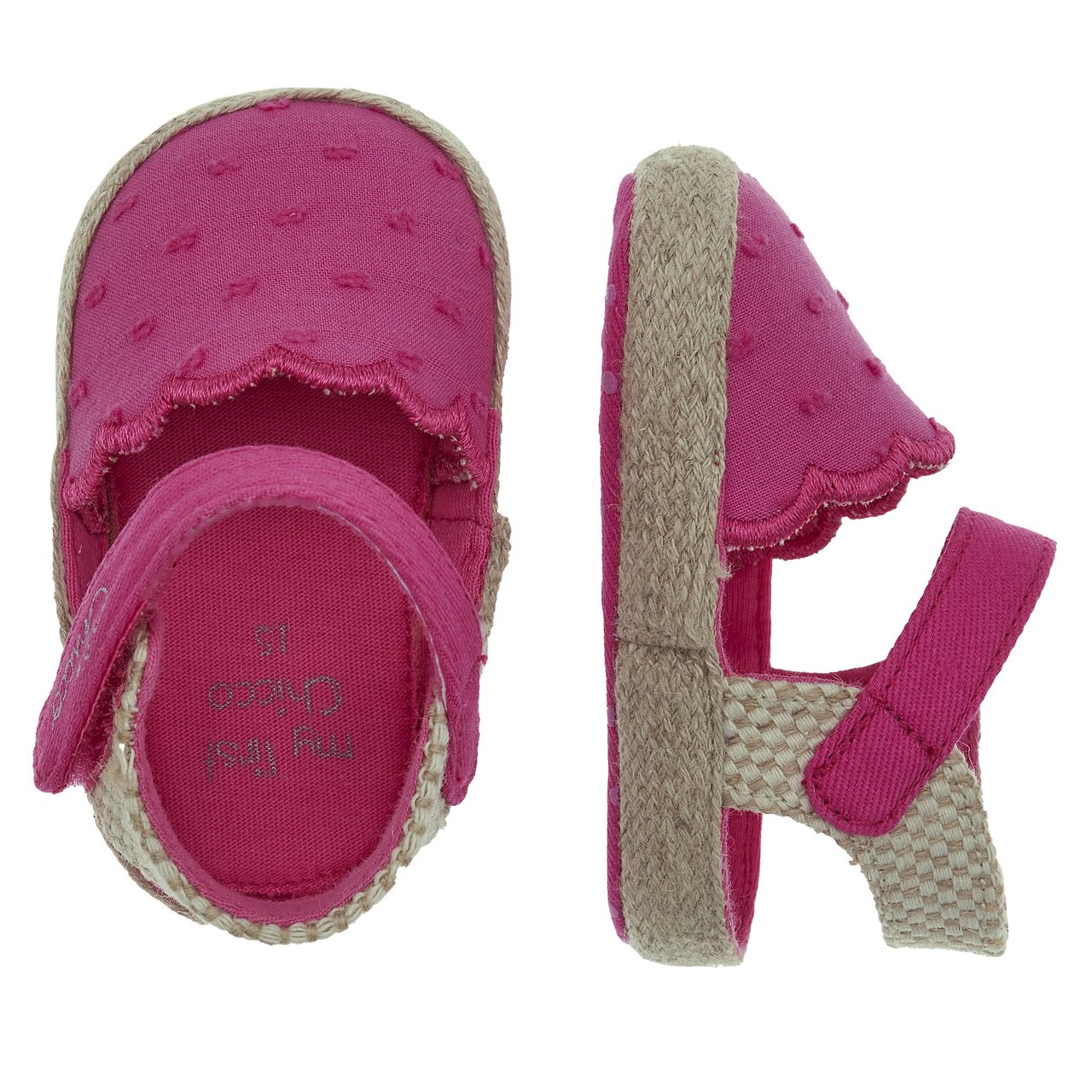 - Sandalo da bambina a punta chiusa dal gusto folk in tessuto sangallo con bordo in corda