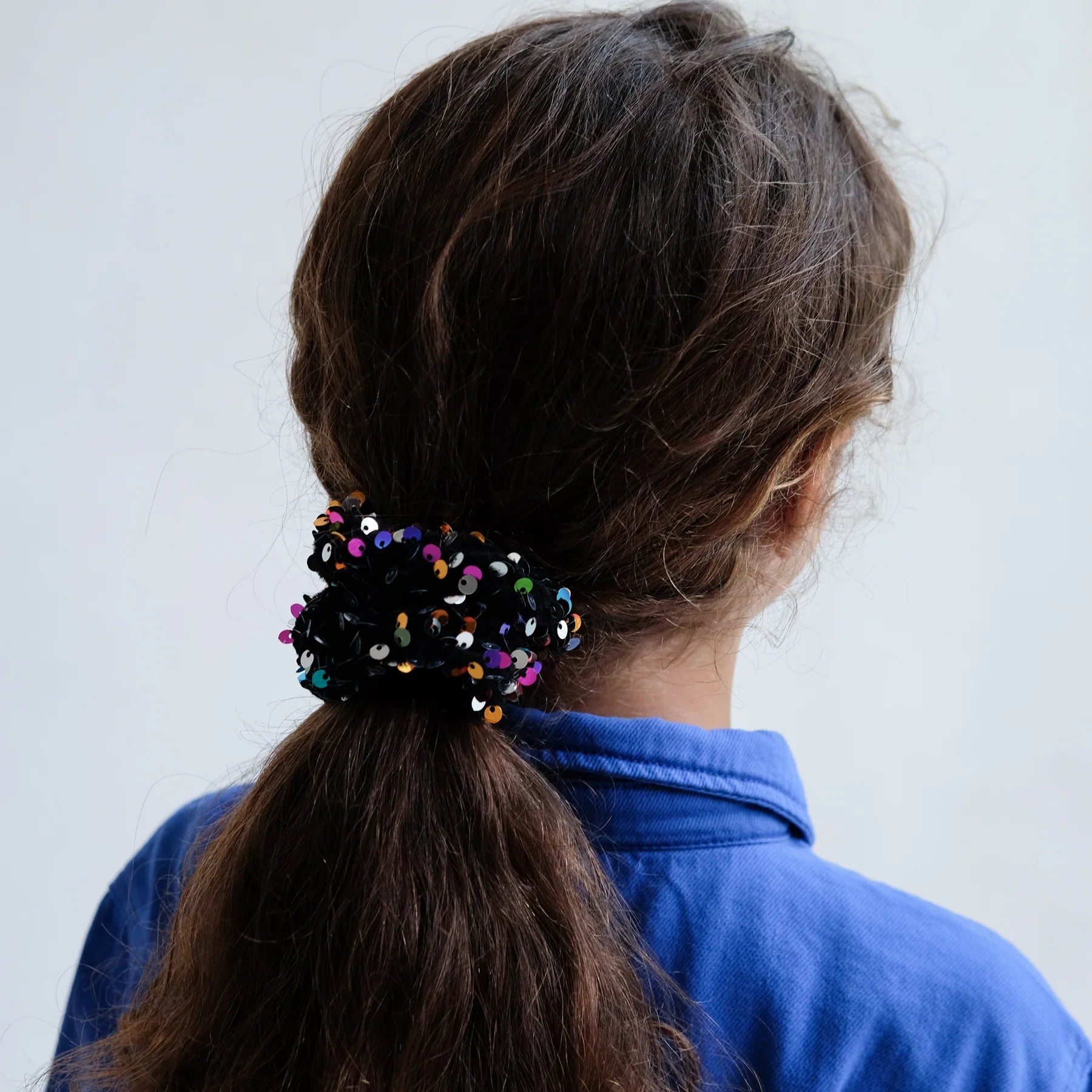 - Scrunchie rivestito in tessuto decorato con paillettes multicolori