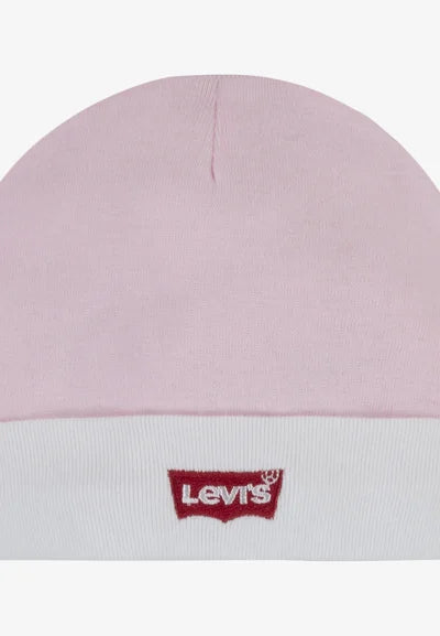 Set regalo in puro cotone composto da body, cappellino e calze. Body con chiusura a bottoncini a pressione sul cavallo, manica corta e logo batwing stampato sul davanti in contrasto. Cappellino con fascia in contrasto e logo ricamato sul davanti. Calze con fascia in contrasto ai polsi e logo ricamato.