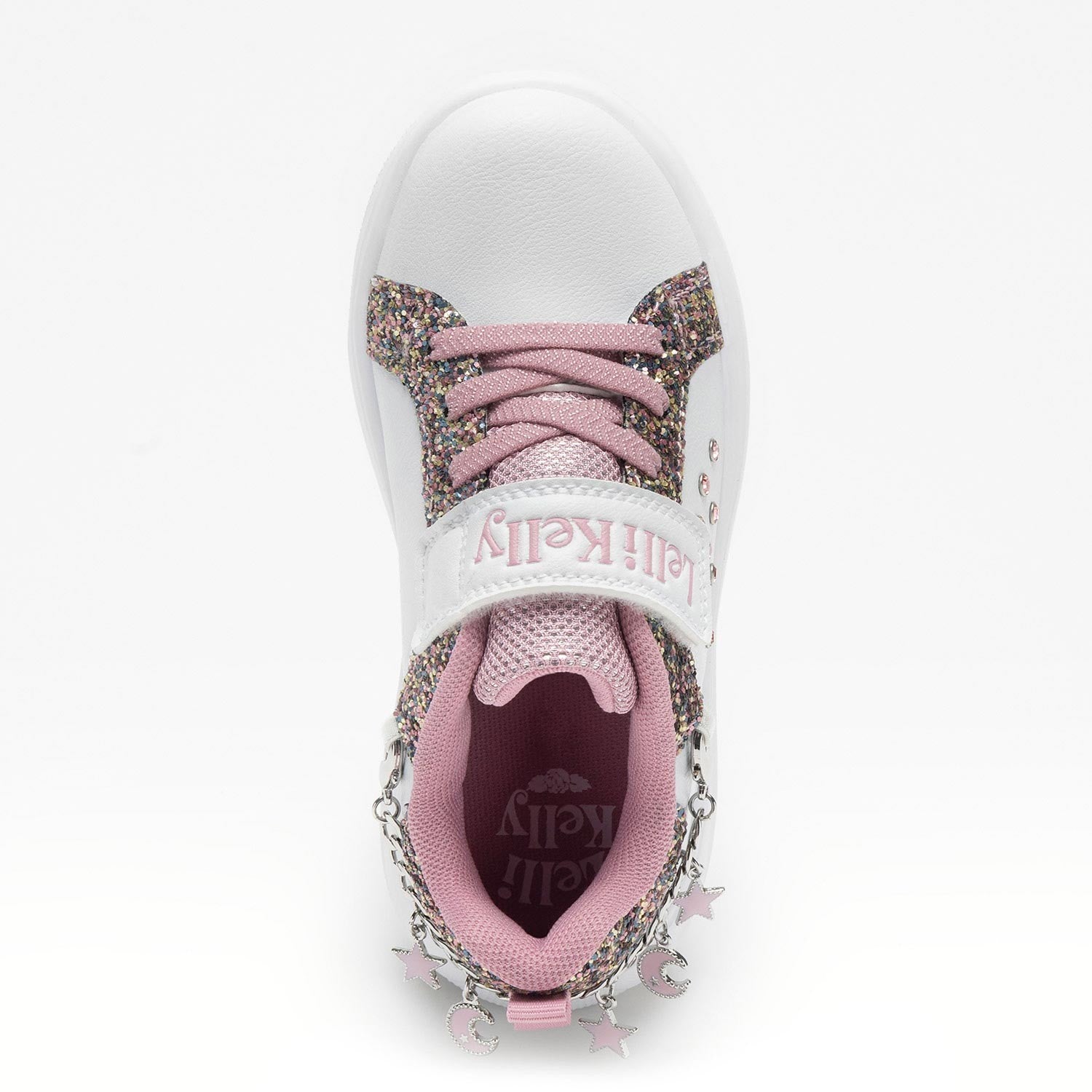 Gioiello è l’esclusiva sneaker di Lelli Kelly dedicata a tutte le mini fashioniste. Caratterizzata dallo speciale accessorio braccialetto, le bambine possono decidere se indossarlo sulla scarpa o al polso, per esprimere al meglio la propria estetica e personalità. Sono disponibili moltissimi braccialetti diversi con pendagli e decorazioni super chic e divertenti. Le tomaie sono ulteriormente impreziosite da strass luminosi e inserti in glitter scintillanti.