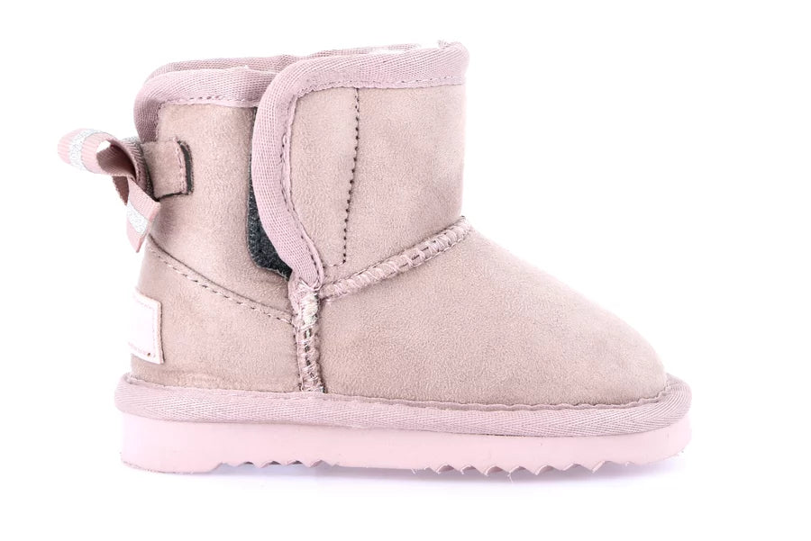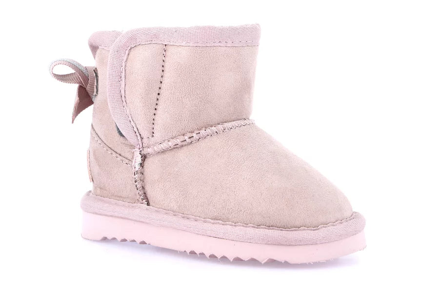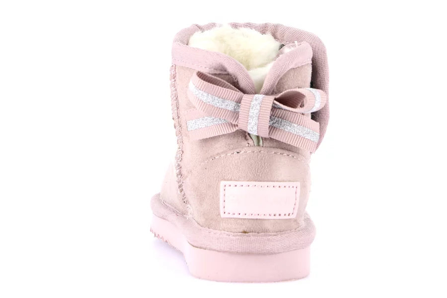 Tronchetti da bimba in pelliccia sintetica. Sono abbelliti con due grandi fiocchi sul tallone. I caldissimi materiali impiegati per la realizzazione assicurano un comfort incredibile anche nella stagione fredda.