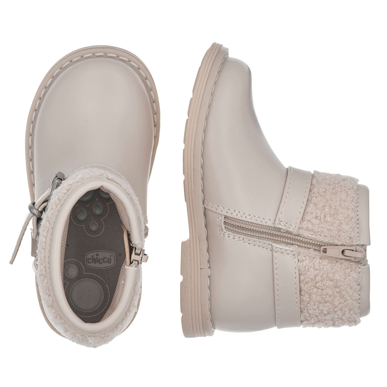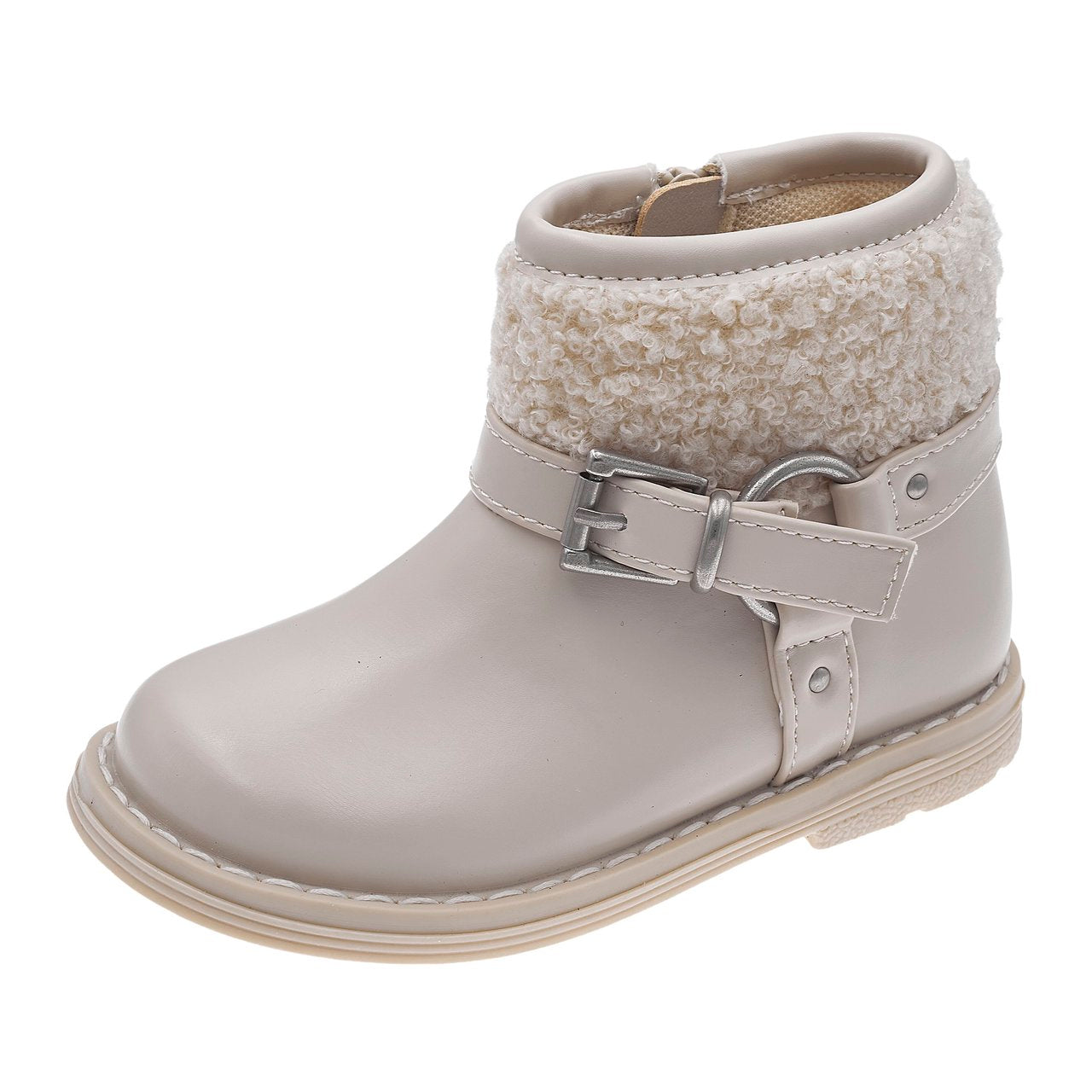 - Stivaletto da bambina con gambale in tessuto effetto pelliccia e fibbia decorativa, con zip laterale