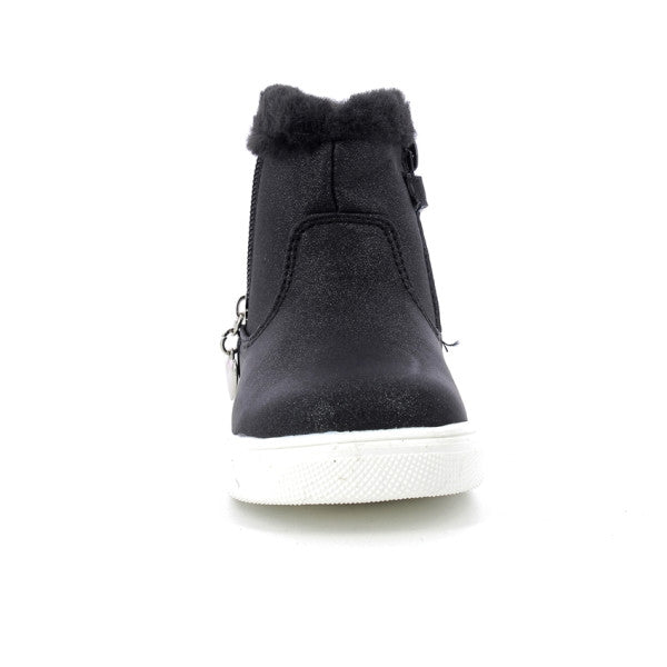 Stivaletto basso che si distingue, grazie alla sua struttura e all'altezza del suo battistrada, che la rendono davvero ideale per la stagione invernale. E' realizzata in pelle sintetica e pelliccia sintetica, chiusura zip con sottopiede in vera pelle e suola in TPR
