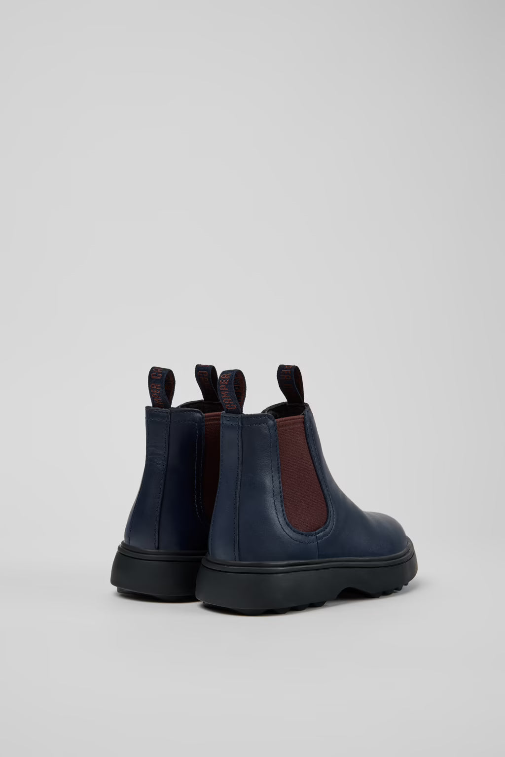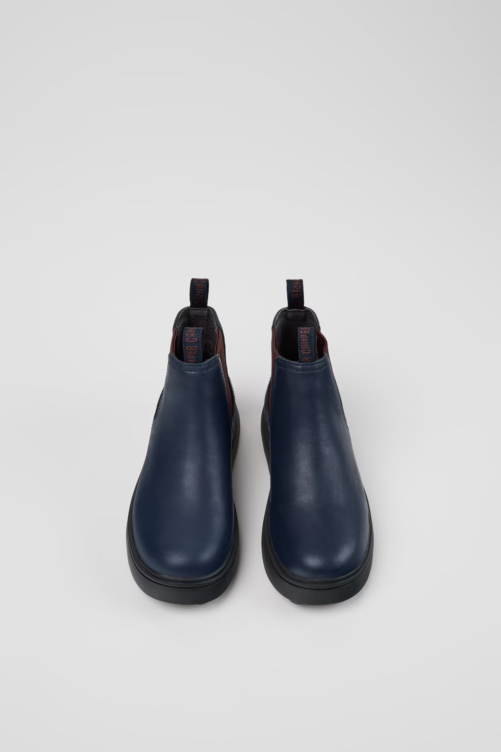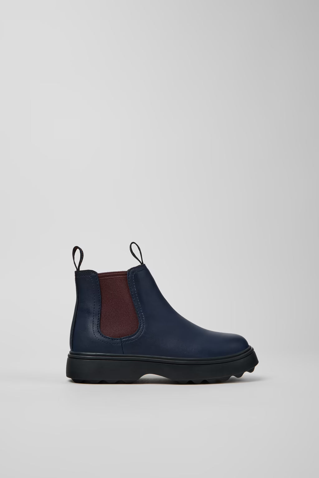 Stivaletti blu in pelle di vitello per bambini con solette OrthoLite® Recycled™ e suole in gomma.