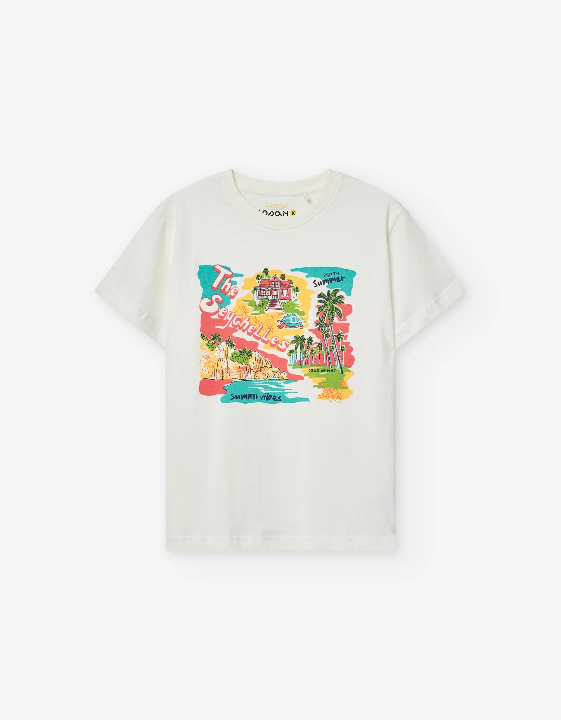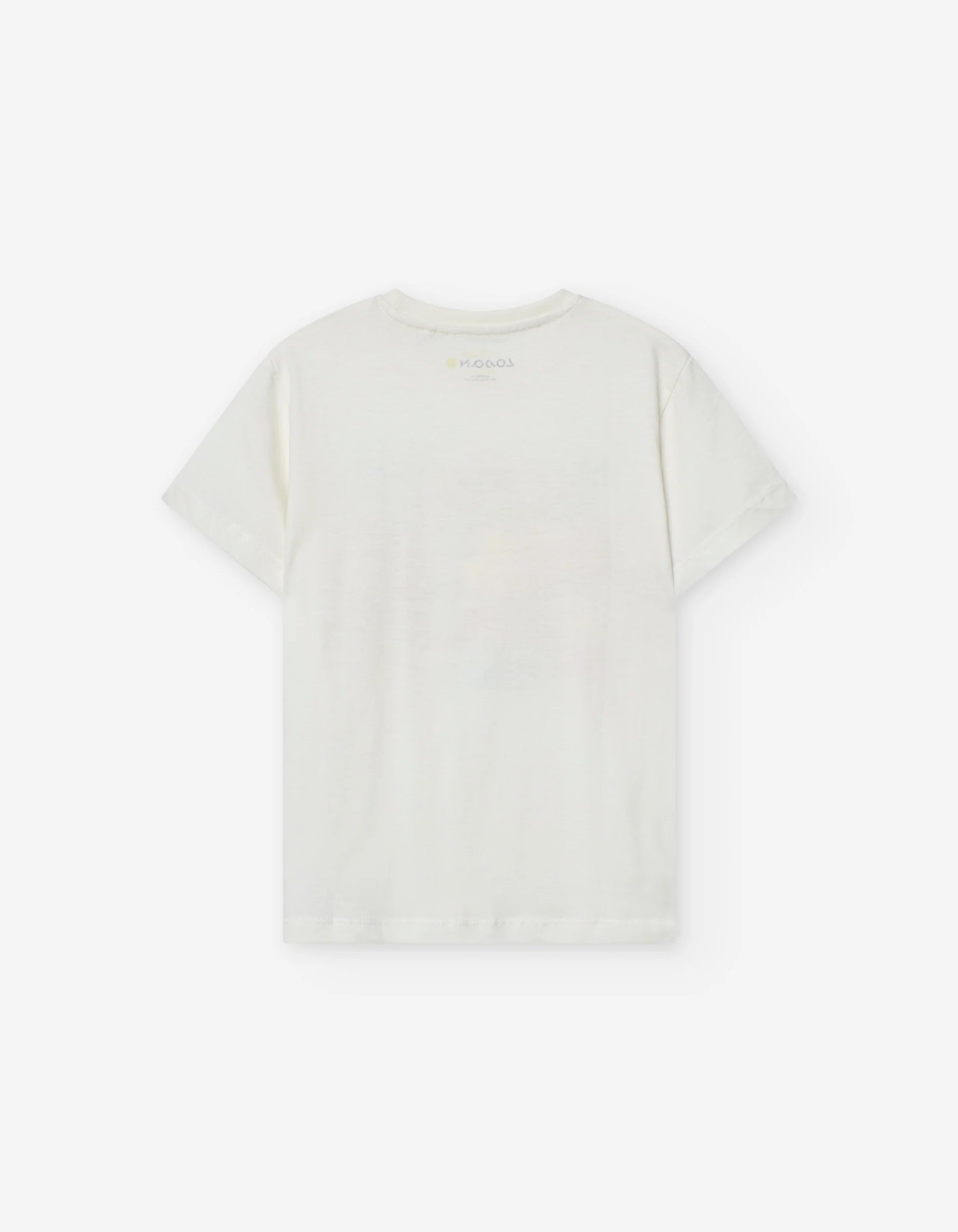 T-shirt bianca da bambino, 100% cotone. Stampa frontale. Etichetta interna stampata per non irritare la pelle.