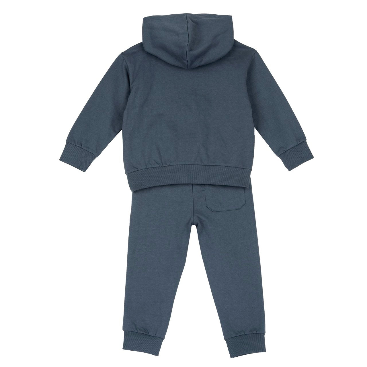 - Tuta girocollo con cappuccio e pantaloni in felpa di cotone garzata