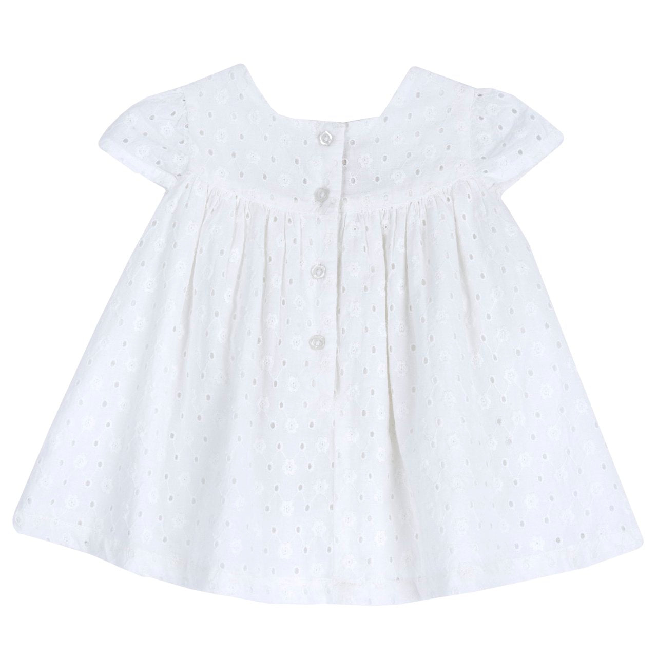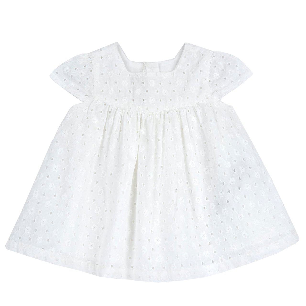 - Vestito girocollo con maniche ad aletta in tessuto di cotone sangallo